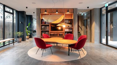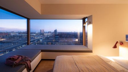 Im Innern des 16 Stockwerke hohen Turms befinden sich Hotelappartements, bei ihrer Planung bezogen Lundgaard & Tranberg Architects neben den gestalterischen auch die städtebaulichen Gegebenheiten in den Entwurf ein. „Wir haben unter der Prämisse gearbeitet, dass ein Hochhaus im Zentrum von Østerbro sehr sorgfältig in die Umgebung integriert werden muss. Das Gebäude liegt daher wie die Stadthäuser mit fünf Stockwerken an der Straße und erst dahinter erhebt sich ein ungewöhnlich schmaler und schlanker Turm, der sich auf das Gelände zurückzieht. Wenn man auf der Straße steht, entdeckt man zunächst ein Haus, das zu den umliegenden Gebäuden passt, und erst später den schlanken Turm", sagt Lene Tranberg, Architektin und Partnerin von Lundgaard & Tranberg Architekten.