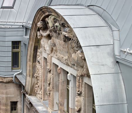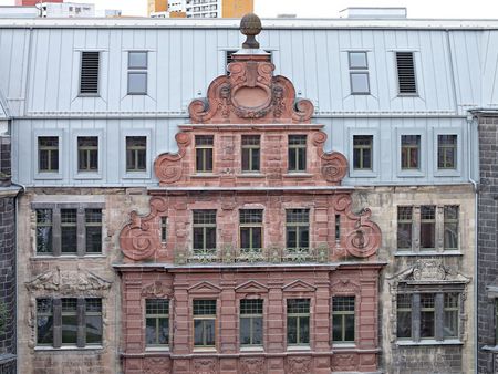 Wilhelm Walther hatte die lange Straßenfront mit insgesamt fünf Risaliten gegliedert, über denen sich jeweils opulente Ziergiebel erhoben. Bei der Reparatur nach 1945 verzichtete man auf diese Giebel und setzte stattdessen ein durchgehendes, völlig schmuckloses Dachgeschoss mit Dachpappedeckung auf. Dieses Nachkriegsgeschoss wurde im Rahmen der jetzigen Modernisierung komplett zurückgebaut und durch eine zweigeschossige Stahlbetonkonstruktion ersetzt. Das erweiterte nicht nur die nutzbare Fläche im Gebäude, sondern erlaubte auch eine völlige Neugestaltung der Dachlandschaft.