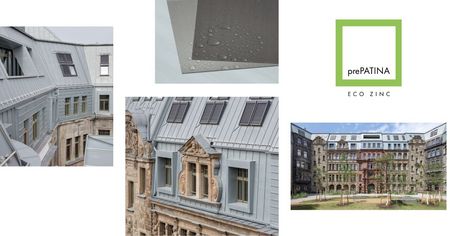 RHEINZINK prePATINA ECO ZINC blaugrau besticht durch seine vorbewitterte Oberfläche, die vor ungleichmäßiger Patinierung schützt. Echtes Titanzink, das sich präzise falzen, formen und löten lässt – ideal für anspruchsvolle Dach- und Fassadenrestaurierungen mit dauerhaft eleganter Optik.