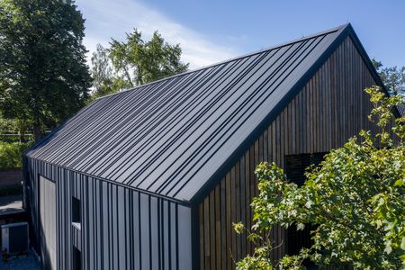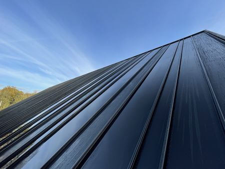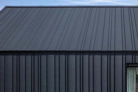 Anwendung: Dach und Fassade in RHEINZINK-GRANUM basalte, Winkelstehfalz