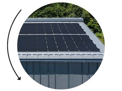 die Module lassen sich frei positionieren und werden direkt an den Doppelstehfalzen befestigt - unabhängig von den Befestigungshaften der Falzdeckung.