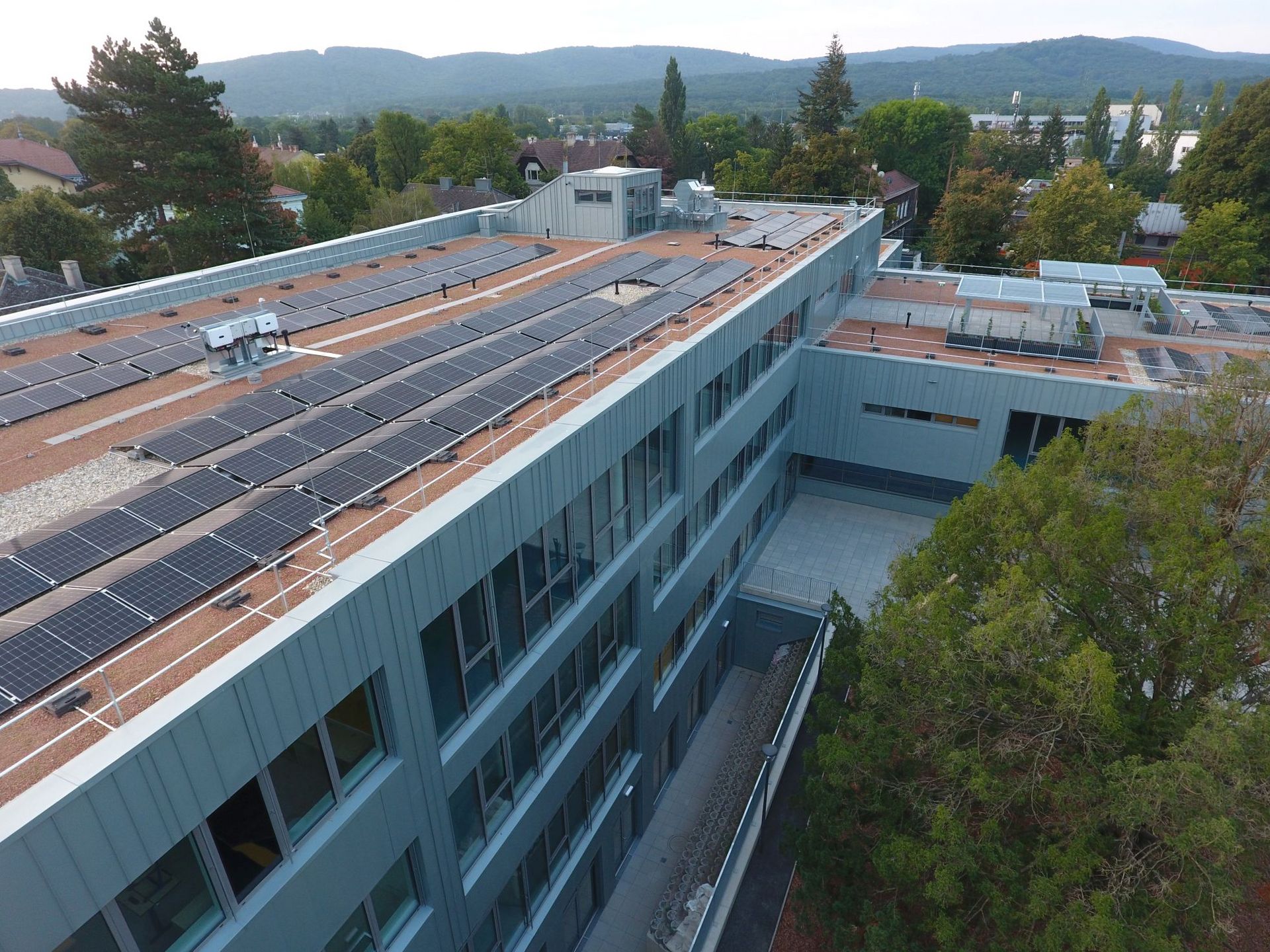 Im Auftrag der Stadt Wien wurde ein höchst energieeffizientes Schulgebäude errichtet. Neben dem Einsatz von Erdwärmesonden zur Geothermienutzung und einer PV-Anlage, stand bei der Wahl der Baumaterialien das Thema Nachhaltigkeit und Langlebigkeit im Fokus. Bei der Fassade fiel die Entscheidung auf ein hinterlüftetes System aus RHEINZINK, mit einer natürlichen Patinabildung und damit wartungsfreien Oberfläche.