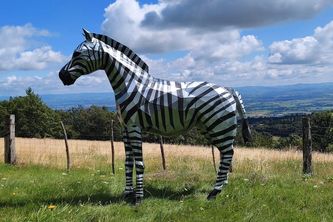 In 130 Arbeitsstunden wurde RHEINZINK Material zurechtgeschnitten, verlötet und patiniert, damit die Streifen des Zebras dem Zink-Tier den letzten Touch verleihen.