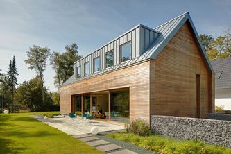 Aus einer modernen Interpretation des bergischen Hauses entstand im nordrhein-westfälischen Ratingen ein Einfamilienhaus, das durch die Kombination aus klassischem Titanzink und warmen Holz für einen besonderen Effekt sorgt.